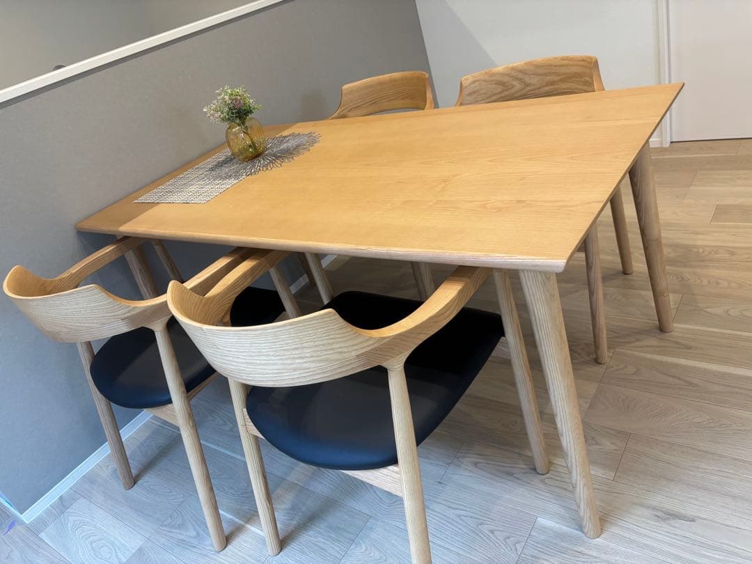 - マンションを購入してもうすぐ3年。ずっとダイニングテーブルが欲しかったのですが、なかなか買いにいけず低いテーブルで生活していました。 子供も少し大きくなったし、そろそろきちんと座らせたかったので購入。 お店に見に行く時間が無かったので、ネットで購入しました。 本日届き、テーブルも椅子も使いやすく、高さは組み立てる前は少し低いかな?と思いましたが、組み立てて設置してみるとちょうどよかったです。 椅子が1脚背もたれの部分が破損し使える状態ではなかったのですぐにお店に電話しました。 すぐに交換の手続きもしてもらえてよかったです。